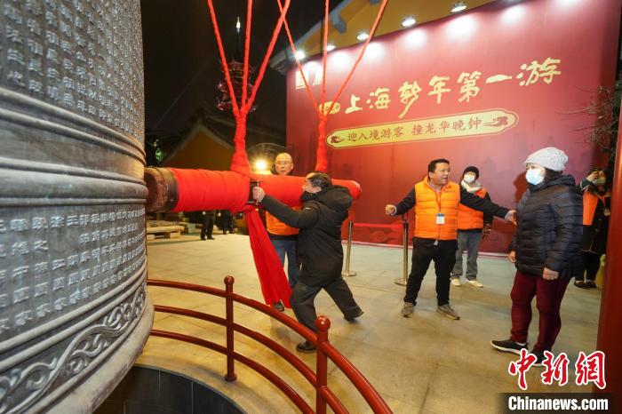 現(xiàn)場,中外游客與上海市民一同觀看舞獅表演,撞古寺銅鐘,寫新年祝福,蓋新年郵戳,品越年素面,玩非遺項目,樂游上海。