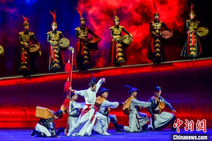 新疆原創(chuàng)歷史題材舞劇《張騫》在開幕式上演繹。中新社記者 劉新 攝(來源:中新網(wǎng))