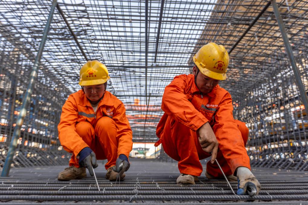 施工人員在滬蘇通鐵路二期項(xiàng)目作業(yè)。新華社記者 王翔 攝