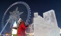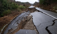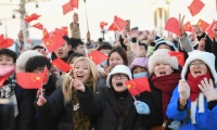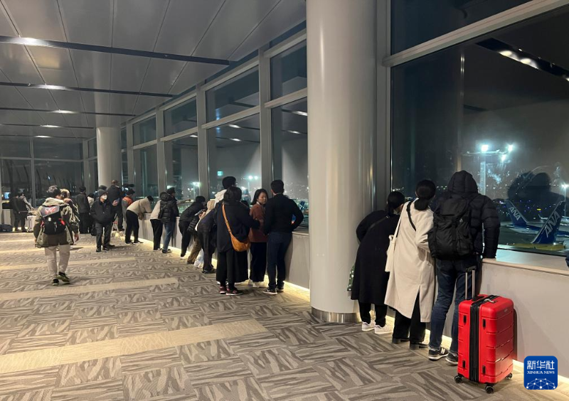 1月2日,在日本東京羽田國際機場,因機場跑道封閉滯留的乘客望向客機起火事故現(xiàn)場。