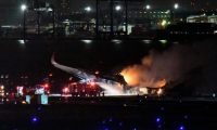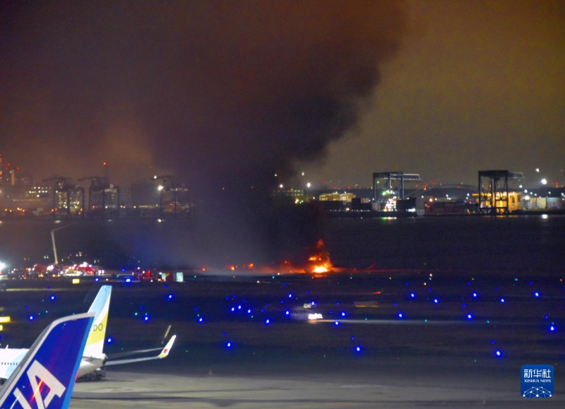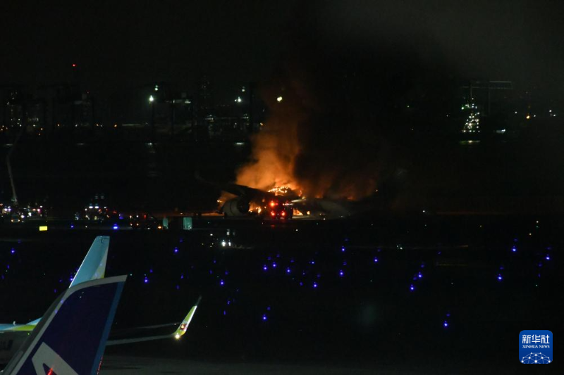 這是1月2日在日本東京羽田國際機場拍攝的起火客機。
