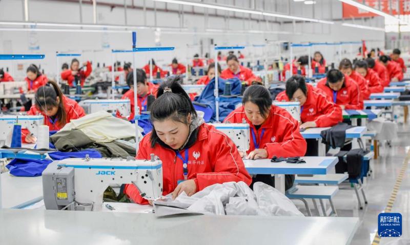 1月3日,在河北省遵化市經(jīng)濟(jì)開(kāi)發(fā)區(qū)一家服裝企業(yè),工人在生產(chǎn)車間工作。