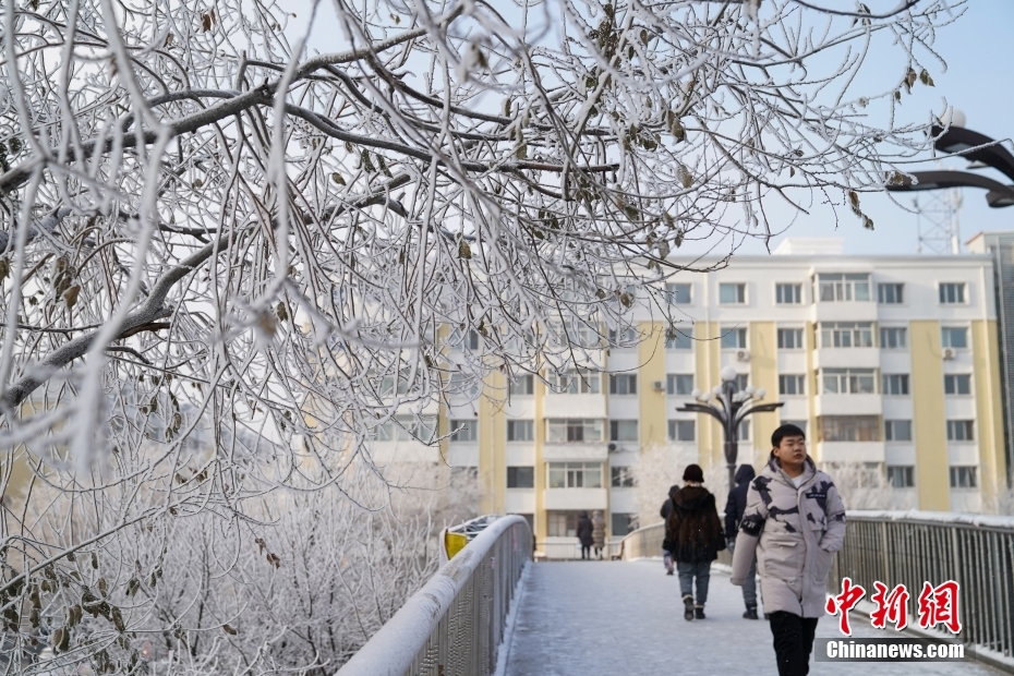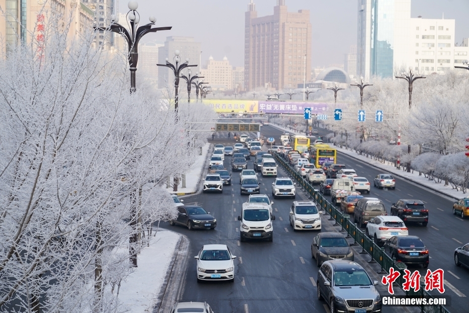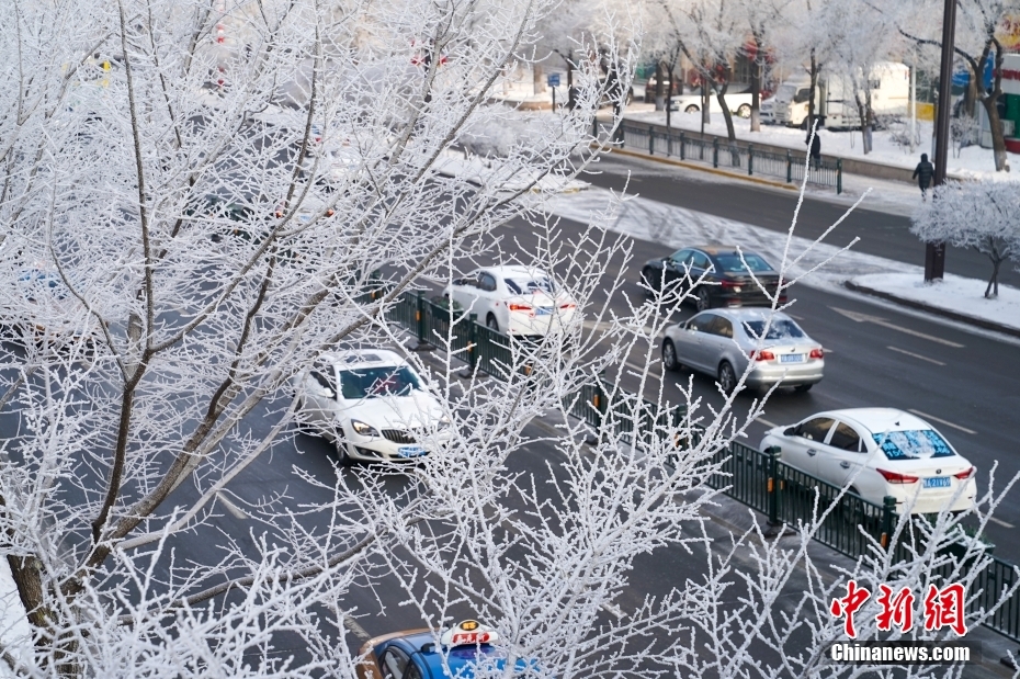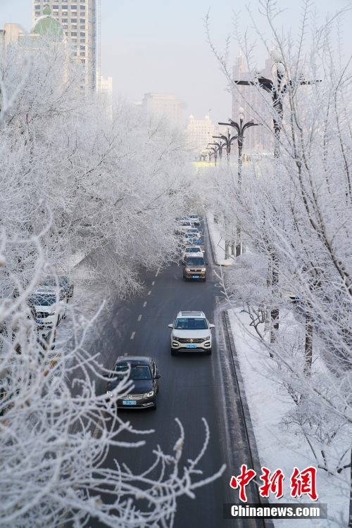 1月3日,黑龍江哈爾濱大街小巷出現(xiàn)霧凇景觀。中新社發(fā) 趙宇航 攝