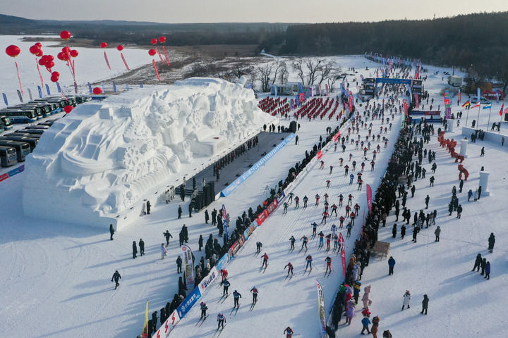 這是2024年1月4日在吉林省長春市凈月潭國家森林公園舉行的第22屆中國長春凈月潭瓦薩國際滑雪節(jié)現(xiàn)場。新華社記者 許暢 攝