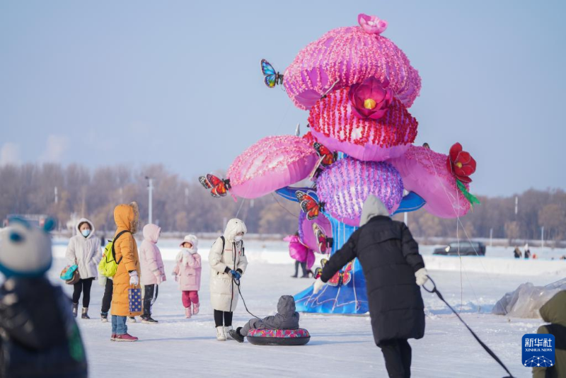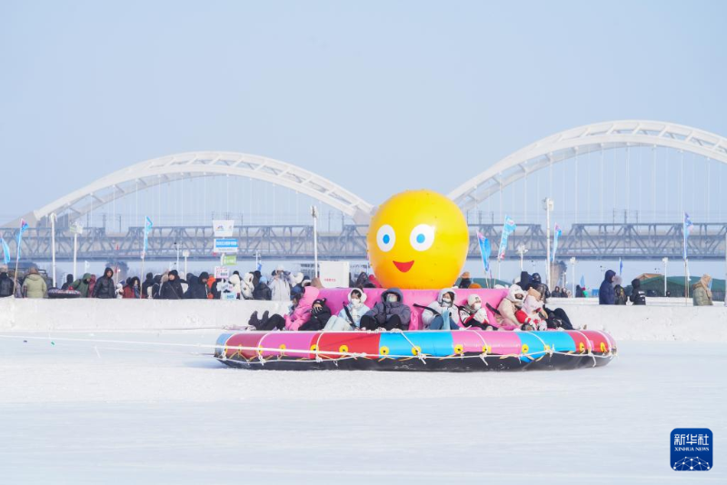 1月5日,游客在松花江冰雪嘉年華游玩。