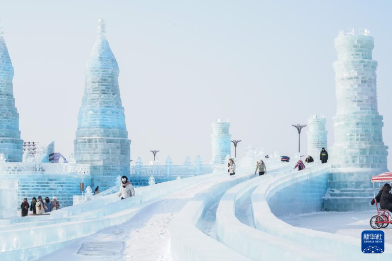 1月5日,游客在哈爾濱冰雪大世界游玩。