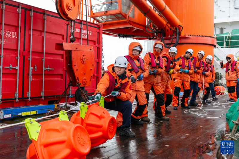 北京時(shí)間1月6日,考察隊(duì)在布放潛標(biāo)。北京時(shí)間1月6日,中國(guó)第40次南極考察隊(duì)在阿蒙森海成功布放深水生態(tài)潛標(biāo),這也是中國(guó)首次在極地布放生態(tài)潛標(biāo)。新華社記者 周圓 攝