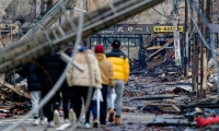 1月8日,游客在哈爾濱市道外區(qū)中華巴洛克歷史文化街區(qū)內(nèi)游玩。