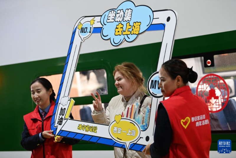 1月10日,旅客(中)在西安站參加CR200J1-C型復(fù)興號動力集中型動車組列車首發(fā)活動。