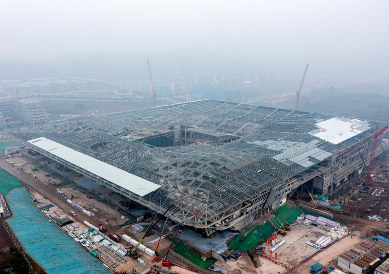 新年伊始,在湖南長沙機(jī)場(chǎng)改擴(kuò)建工程T3航站樓項(xiàng)目施工現(xiàn)場(chǎng),塔吊林立長臂揮舞,工程車輛往來穿梭,1200余名建設(shè)者奮戰(zhàn)正酣。從高處俯瞰,候機(jī)大廳和指廊組成的五指廊向心造型已經(jīng)顯現(xiàn),建設(shè)現(xiàn)場(chǎng)日新月異。
