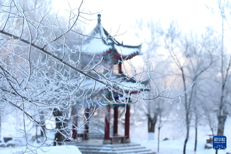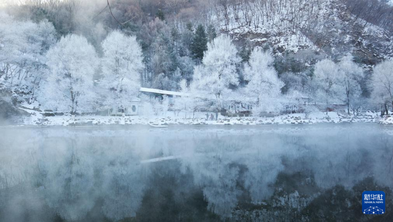 當(dāng)日,位于遼寧省本溪市本溪滿族自治縣本溪水洞景區(qū)的古琴湖周邊出現(xiàn)霧凇景觀。