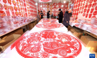 1月14日,在河南省開封市一年貨批發(fā)市場,顧客在選購春節(jié)飾品。