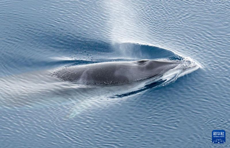 這是1月6日在阿蒙森海拍攝的小須鯨(無人機照片)。
