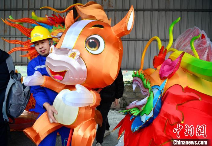 據介紹,本次“兩馬同春鬧元宵”的主題是“閩臺一家親、兩馬親上親”。今年馬尾贈送馬祖的花燈共有35組,以四組祥龍造型為主,兩組12米長、兩組6米長,展現出龍年的新氣象?;暨€包括兩套不同風格十二生肖造型,一套為剪紙圖案,一套為卡通圖案,體現出濃厚的民俗特色。