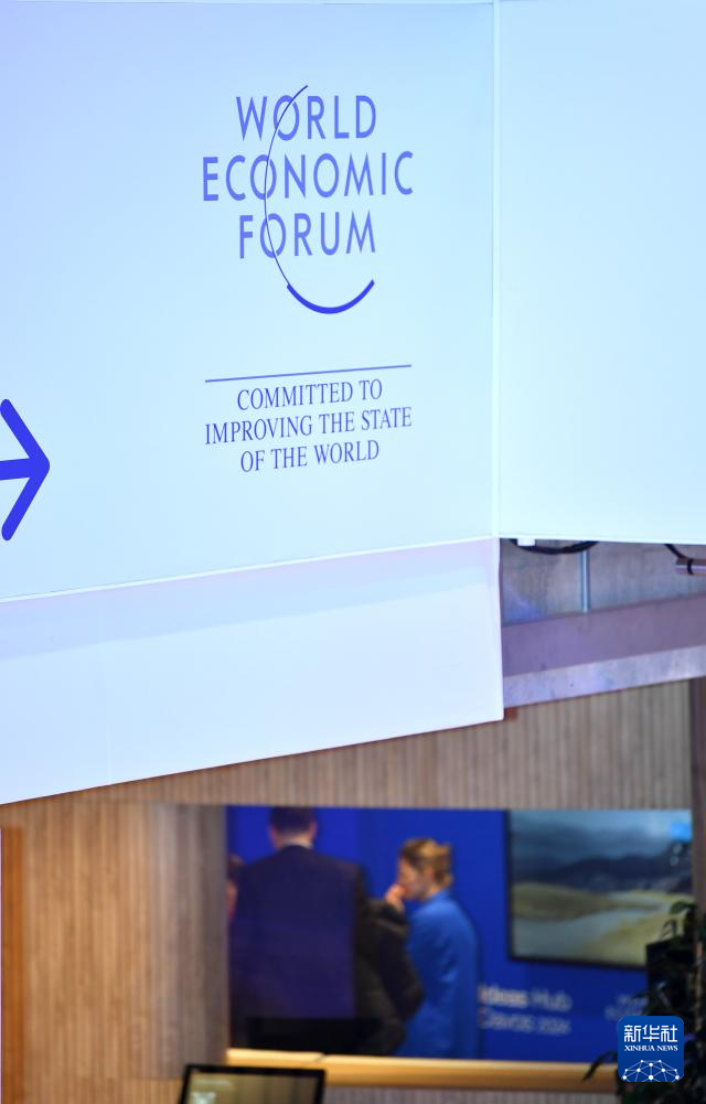 這是1月14日在瑞士達(dá)沃斯拍攝的世界經(jīng)濟(jì)論壇標(biāo)識。