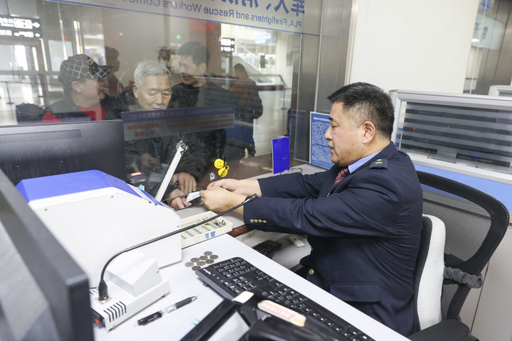 1月12日,旅客在南京火車站售票大廳通過售票窗口購買火車票。新華社發(fā)(史俊 攝)