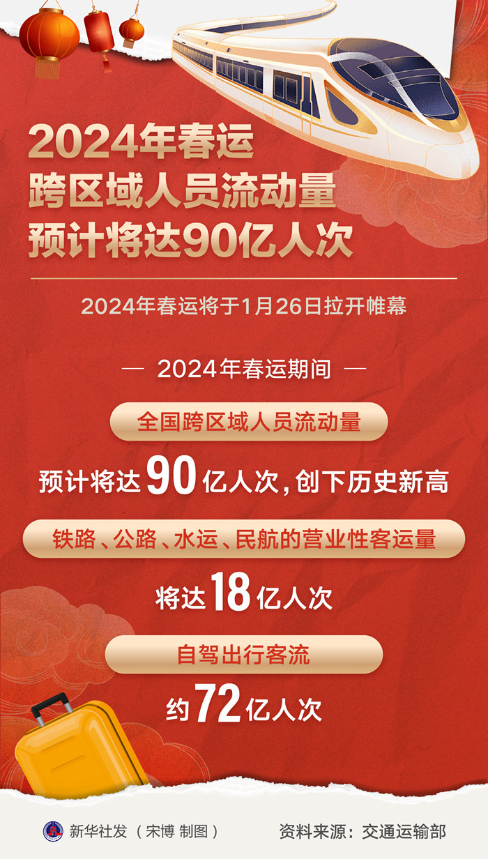來自交通運輸部的最新數(shù)據(jù)顯示,今年春運期間全國跨區(qū)域人員流動量預(yù)計將達到90億人次,創(chuàng)歷史新高。