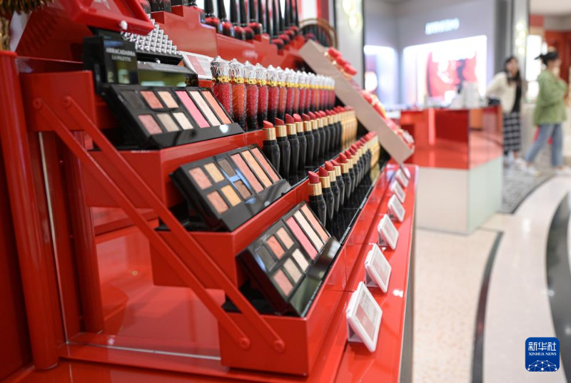 消費者在中免集團??谌赵聫V場免稅店選購商品(1月4日攝)。