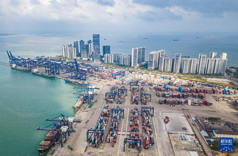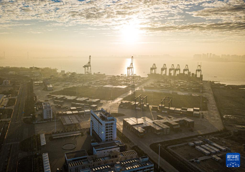 1月1日在海南省洋浦經濟開發(fā)區(qū)拍攝的海南自貿港集裝箱航運樞紐——洋浦國際集裝箱碼頭(無人機照片)。