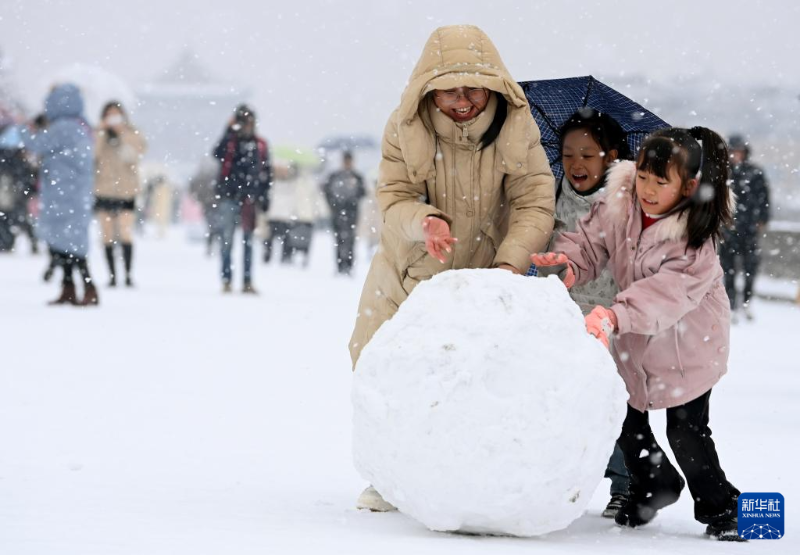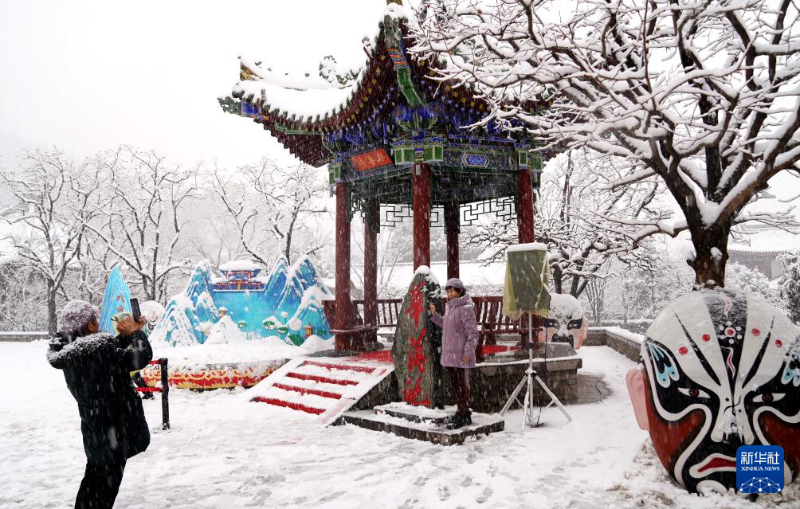 1月16日,游客在西安臨潼華清宮賞雪游覽。