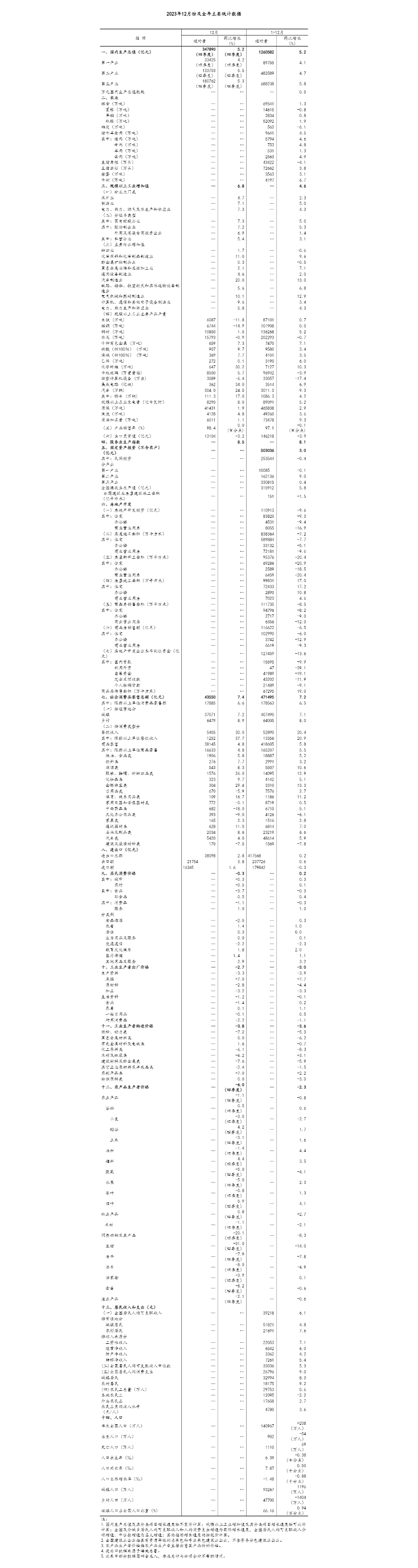 2023年,面對復(fù)雜嚴(yán)峻的國際環(huán)境和艱巨繁重的國內(nèi)改革發(fā)展穩(wěn)定任務(wù),在以習(xí)近平同志為核心的黨中央堅(jiān)強(qiáng)領(lǐng)導(dǎo)下,各地區(qū)各部門認(rèn)真貫徹落實(shí)黨中央、國務(wù)院決策部署,堅(jiān)持穩(wěn)中求進(jìn)工作總基調(diào),完整、準(zhǔn)確、全面貫徹新發(fā)展理念,加快構(gòu)建新發(fā)展格局,全面深化改革開放,加大宏觀調(diào)控力度,著力擴(kuò)大內(nèi)需、優(yōu)化結(jié)構(gòu)、提振信心、防范化解風(fēng)險(xiǎn),我國經(jīng)濟(jì)回升向好,供給需求穩(wěn)步改善,轉(zhuǎn)型升級積極推進(jìn),就業(yè)物價(jià)總體穩(wěn)定,民生保障有力有效,高質(zhì)量發(fā)展扎實(shí)推進(jìn),主要預(yù)期目標(biāo)圓滿實(shí)現(xiàn)。