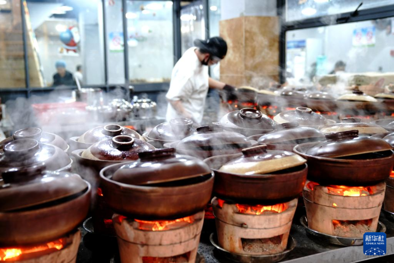 1月17日,人們在上海黃河路一家店里品嘗美食。