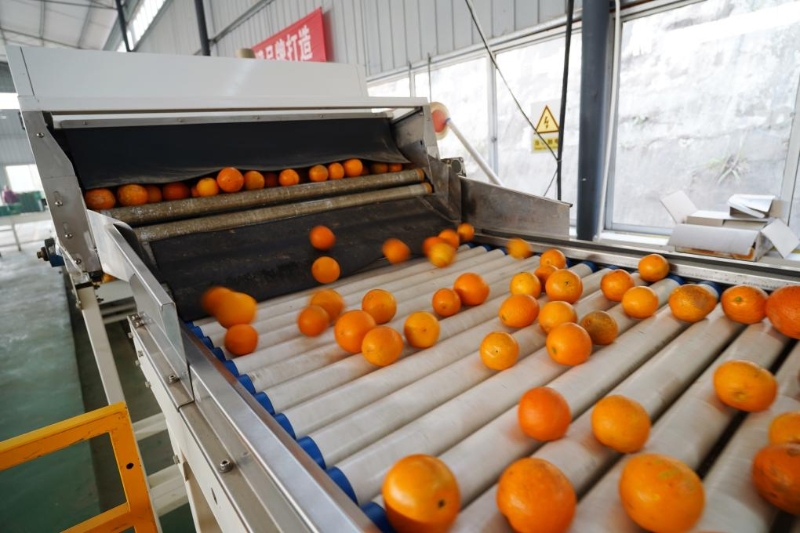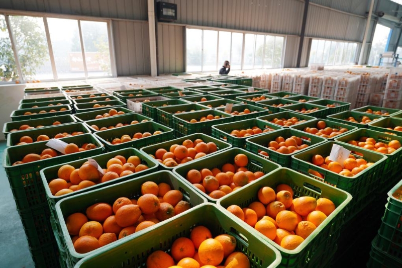 完成分選操作等待對外銷售的臍橙。新華社記者邢拓 攝