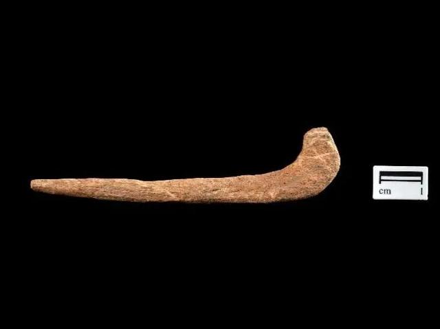 另一項(xiàng)重要成果是發(fā)掘出舊-新石器時(shí)代過(guò)渡階段的3座墓葬,出土的人類骨骼包括未成年下頜2件和成年顱骨1件,并隨葬有骨器3件,包括1件魚(yú)鉤。