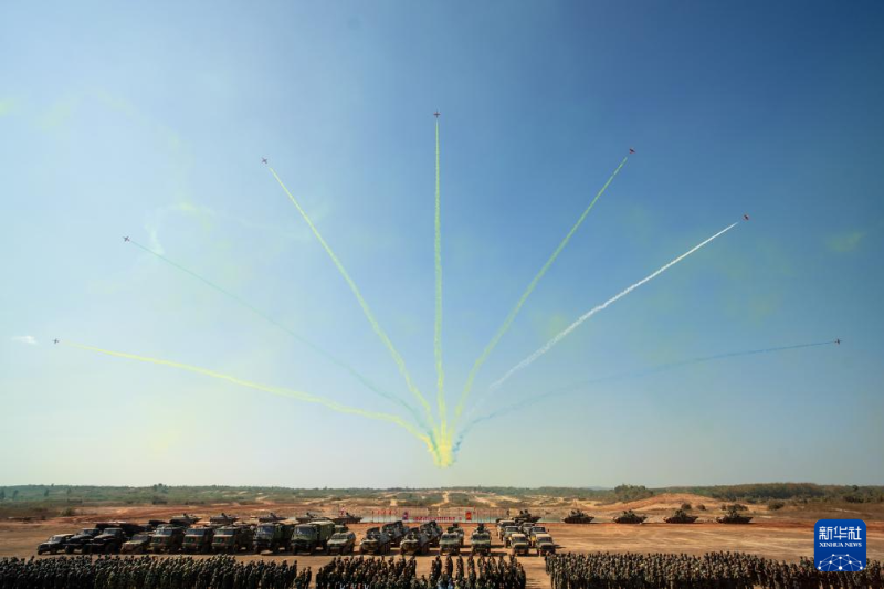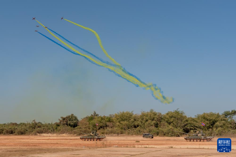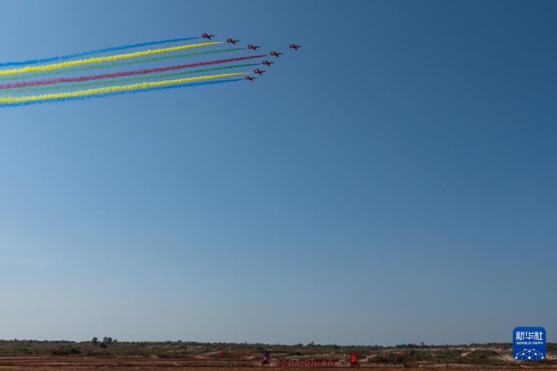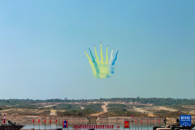 1月17日,中國空軍“紅鷹”飛行表演隊在老撾萬象庫瑪?shù)ぼ娛聦W(xué)院訓(xùn)練場進行飛行表演。