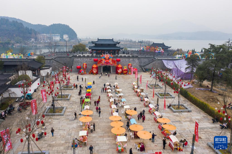 1月18日拍攝的在嚴(yán)州古城內(nèi)舉行的“‘宋’福杭州年——我在建德過大年”活動(無人機(jī)照片)。