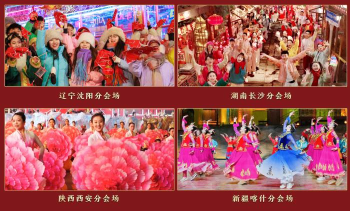在中國工業(yè)博物館的沈陽分會(huì)場,東北曲藝與當(dāng)代風(fēng)尚的創(chuàng)意碰撞,讓受眾在冰天雪地感受火一般的熱情;長沙分會(huì)場選址于湘江與瀏陽河交匯處的“三館一廳”,用青春之歌贊頌“不夜星城”朝氣蓬勃、敢為人先的昂揚(yáng)風(fēng)貌;西安分會(huì)場的國潮表演將陜派說唱、創(chuàng)意水袖、鼓樂交響等多種藝術(shù)形式相融合,大唐不夜城再現(xiàn)詩意滿長安的恢弘景象;位于喀什古城內(nèi)的喀什分會(huì)場,各族群眾歡歌笑語,帶來器樂展示、情景演繹等表演,共同奏響中華民族一家親的絢麗樂章。第二次彩排中,分會(huì)場各具特色的舞臺(tái)設(shè)計(jì)和節(jié)目創(chuàng)排展現(xiàn)出當(dāng)?shù)貪庥舻娘L(fēng)土人情和熱烈的新春氛圍,讓五湖四海的歡樂人群共赴美好之約。