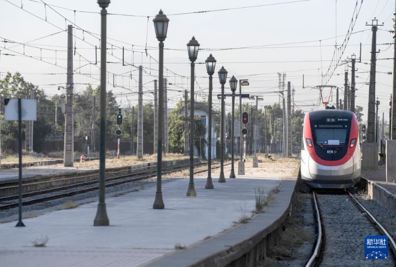 中國企業(yè)中車四方股份公司為智利研制的電力內燃雙動力動車組1月19日在智利投入載客運營,服務智利國家鐵路阿拉梅達至庫里科區(qū)間。該動車組最高運行時速160公里,是當前南美洲最快的軌道列車。