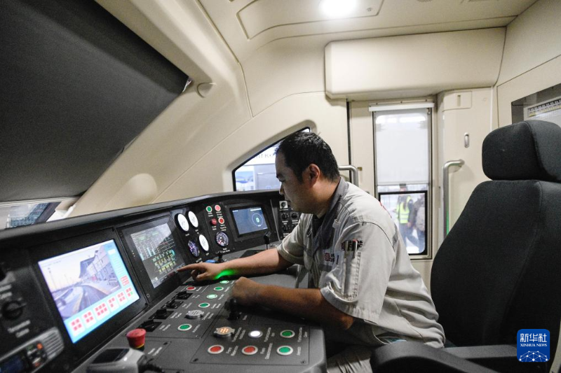 1月19日,在智利圣地亞哥中央車站,中車四方技術人員在電力內燃雙動力動車組駕駛室內工作。