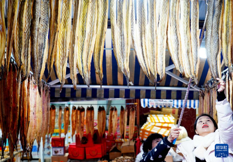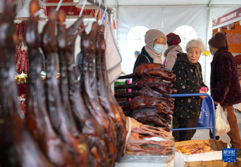 1月22日,人們在山東省青州市云門山街道一家集貿市場上選購年貨。
