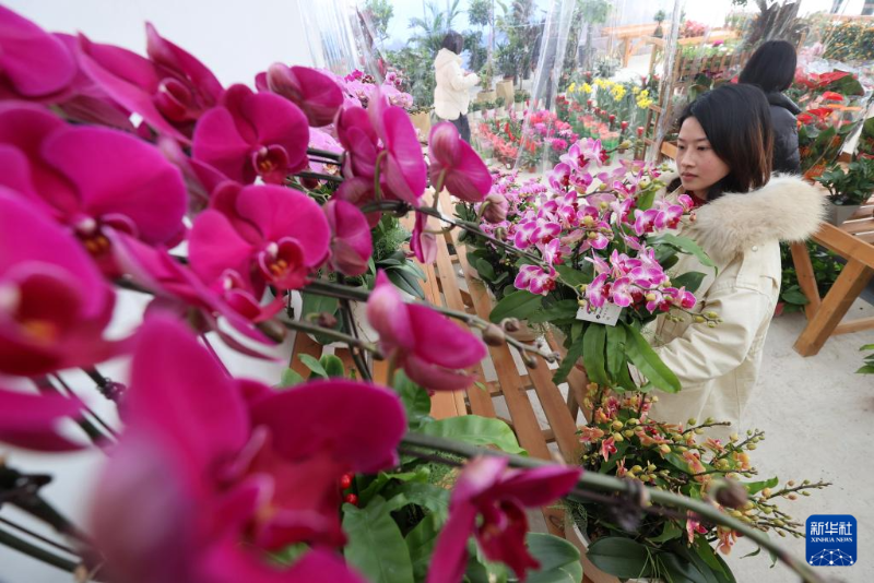 1月22日,市民在浙江省湖州市德清縣一處花卉市場選購花卉。