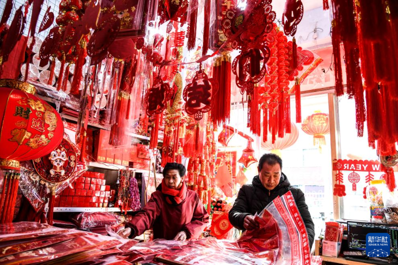 春節(jié)臨近,各地張燈結彩。人們逛花市、賞花燈、置辦年貨,年味漸濃。