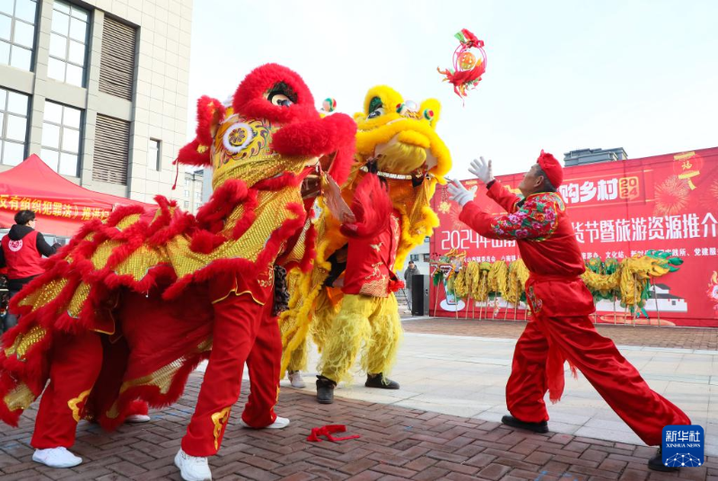 1月22日,人們在安徽省合肥市肥西縣山南鎮(zhèn)南山苑廣場舞獅。