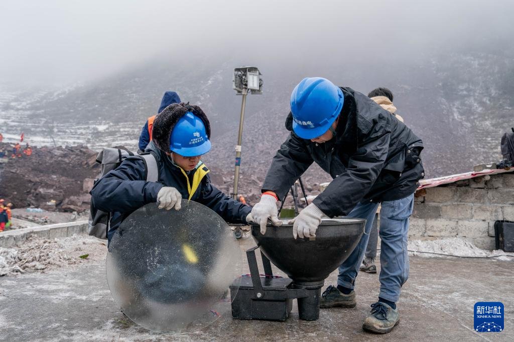 1月23日,工作人員在救援現(xiàn)場安裝照明設(shè)備。