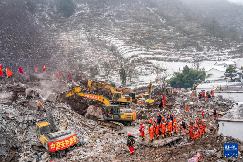 目前,現(xiàn)場共有省、市、縣救援力量1000余人,搜救犬81只,挖機(jī)、裝載機(jī)、運輸救援車輛150余臺(輛)參與救援,現(xiàn)場部署6支專業(yè)搜救分隊,利用雷達(dá)生命探測儀、音視頻探測儀、無人機(jī)、搜救犬等技術(shù)手段,在3個區(qū)域開展搜救作業(yè)。