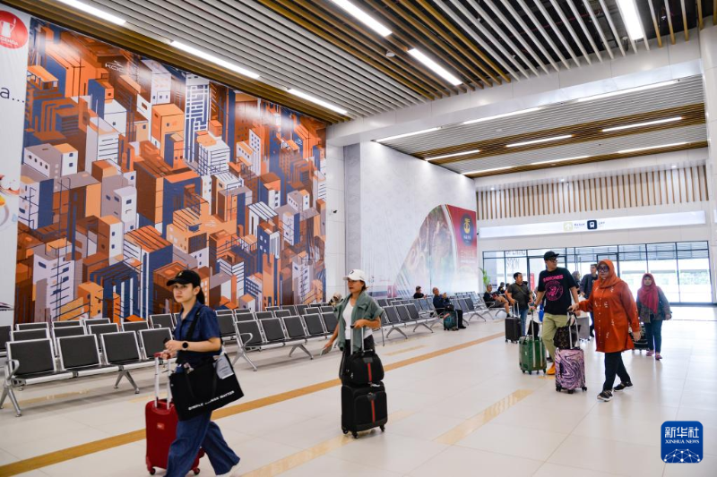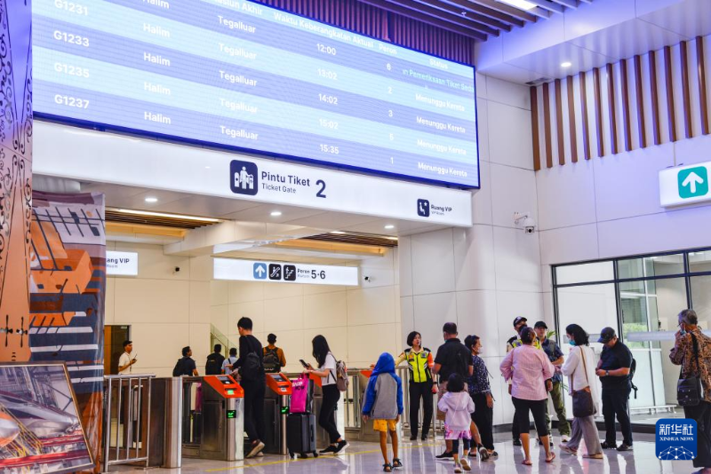1月24日,在印度尼西亞雅加達(dá)哈利姆站候車大廳,乘客刷票前往站臺。