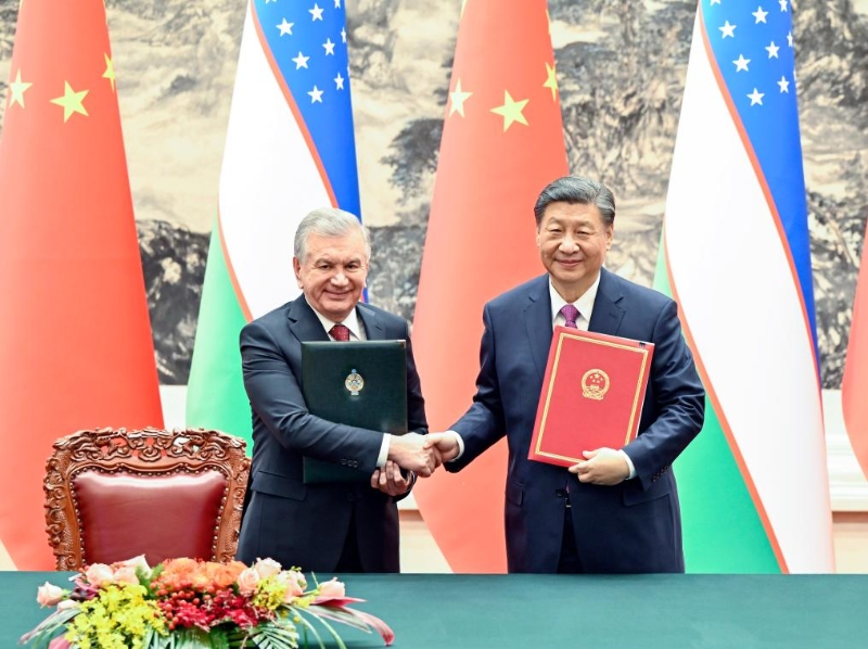 1月24日下午,國家主席習近平在北京人民大會堂同烏茲別克斯坦總統(tǒng)米爾濟約耶夫舉行會談。會談后,兩國元首簽署并發(fā)表了《中華人民共和國和烏茲別克斯坦共和國關于新時代全天候全面戰(zhàn)略伙伴關系的聯(lián)合聲明》。
