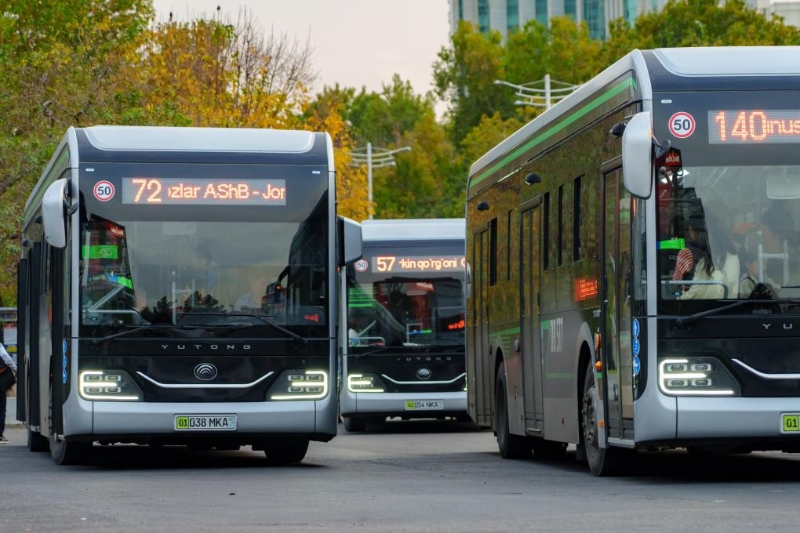 2023年10月26日,市民在烏茲別克斯坦首都塔什干乘坐中國新能源客車。