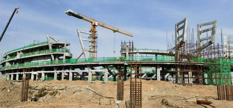 位于塔什干的奧林匹克城項目工地上,中烏施工團隊正辛勤工作。