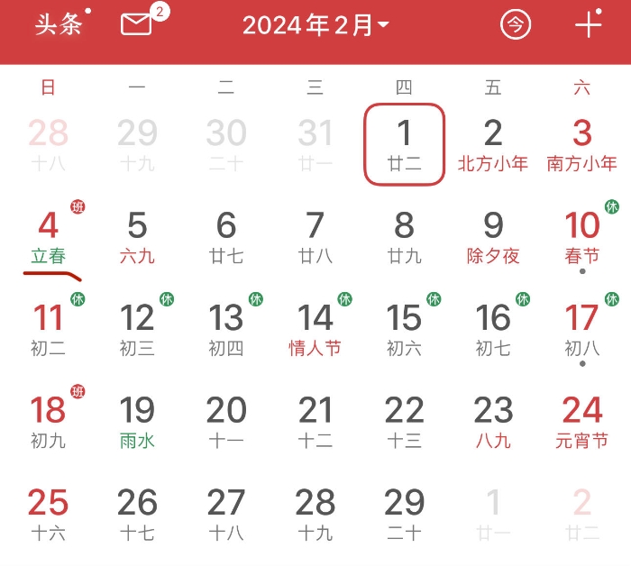例如, 2024年的“立春日”是2月4日,即農(nóng)歷兔年的臘月二十五,而下一個“立春日”是2025年2月3日,已經(jīng)進(jìn)入了農(nóng)歷蛇年的正月,所以有說法稱,2024農(nóng)歷年“無春”。