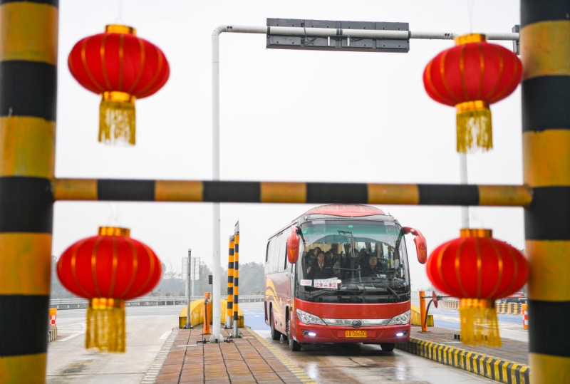 2024年1月26日,公共汽車經(jīng)過重慶繞城高速支坪收費站。新華社記者 王全超 攝