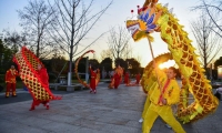1月26日,在北京西站候車室,工作人員懸掛“龍年大吉”裝飾。
