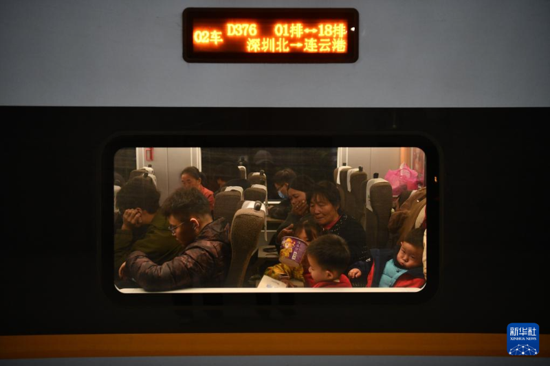 1月26日,旅客在深圳北站乘坐從深圳北開往連云港的列車。