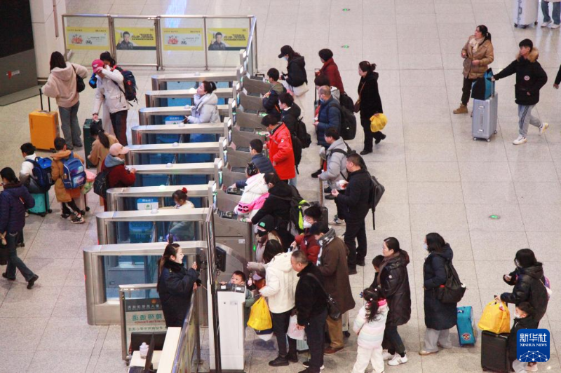 1月26日,旅客在徐州東站排隊檢票乘車。