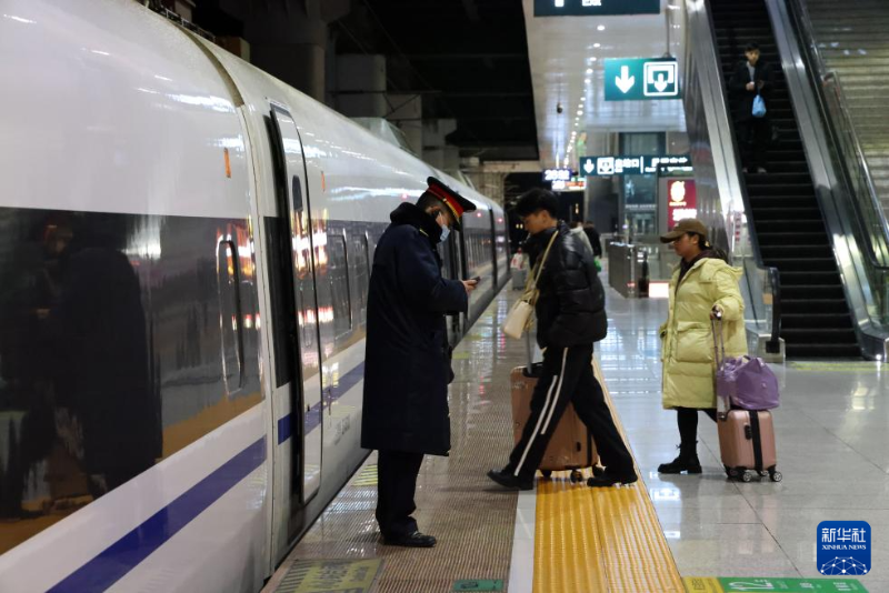 1月26日,旅客在昆明南站搭乘D9111次列車出行。