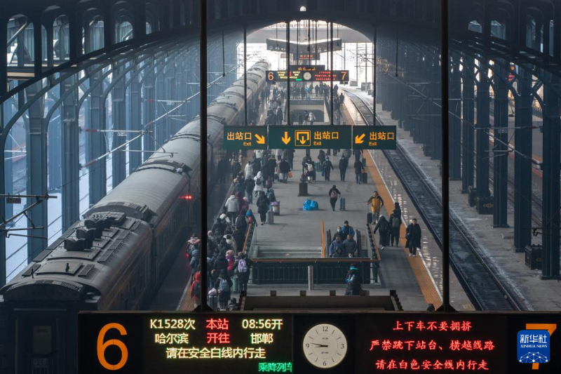 1月26日,在哈爾濱火車站,旅客準(zhǔn)備乘車出行。